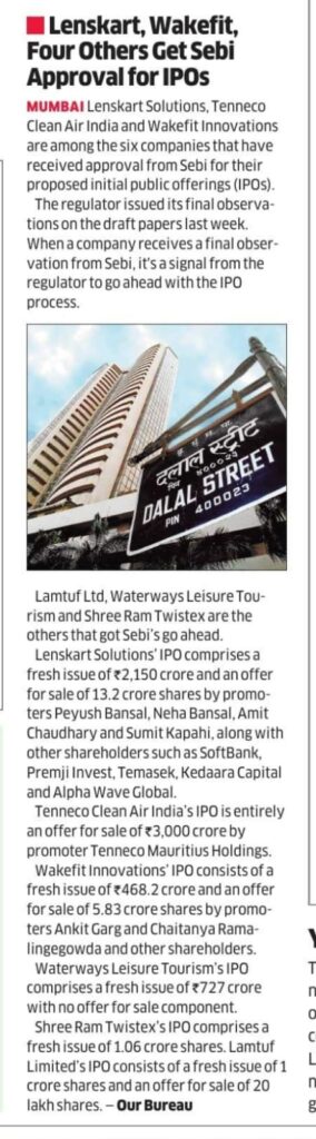LENSKART GOT IPO APPROVAL FROM SEBI.
